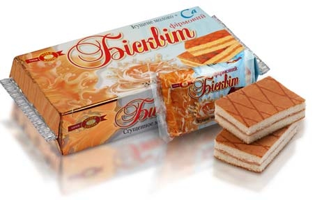 Бісквіт Згущене Молоко (330 г), Бісквіт-шоколад (ХБФ) - Згущене Молоко (330 г), Бісквіт-шоколад (ХБФ) - це ніжний світлий бісквіт з кремовою начинкою на основі згущеного молока. Збагачений кальцієм.