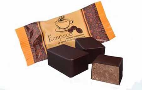 Цукерки Еспресо (3,5 кг) Стимул - це цукерки, виготовленні з кондитерської маси з додаванням какао-порошку, вафельної крихти та натуральної меленої кави, вкріті шоколадною глазур'ю.