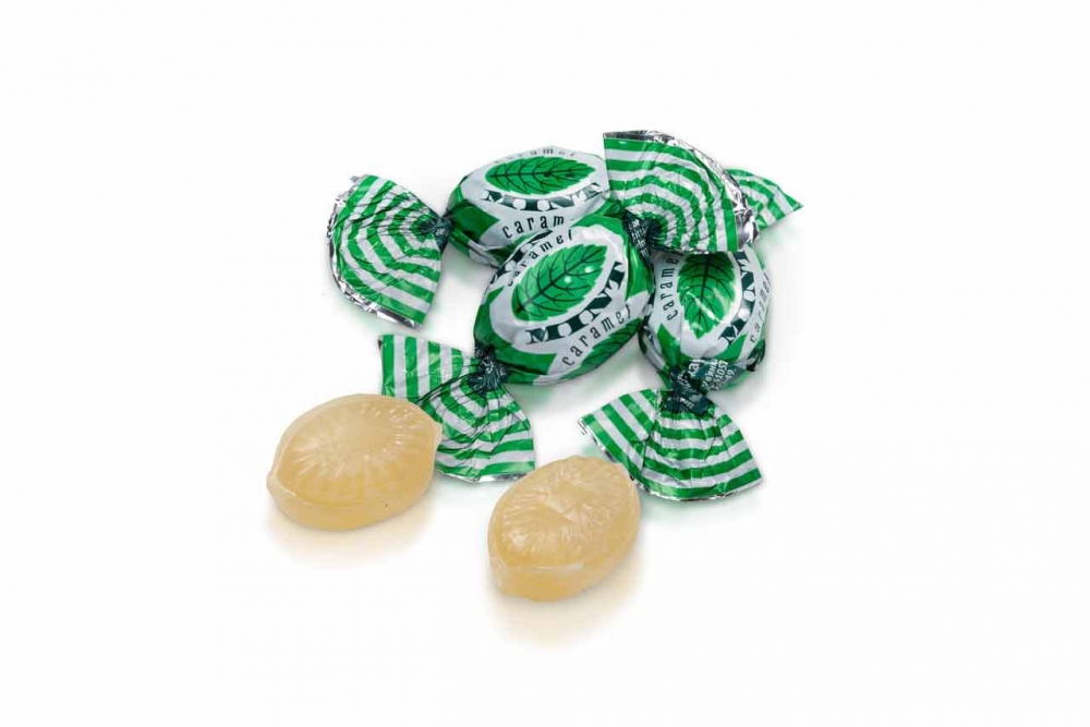 Цукерки М'ятні (4,5 кг), Бісквіт-шоколад (ХБФ) - це карамель льодяникова овальної форми, з насиченим м'ятним смаком, виготовлена з карамельної маси.