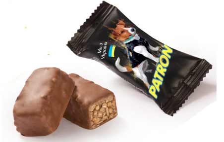 Цукерки Патрон (Patron), (2,5 кг), Лукас - це цукерки виготовлені на основі відомих цукерок «Тузя classic». М’який грильяжний корпус, створений з відбірного соняшникового насіння вкритий шоколадною глазур'ю. Пес Патрон - одни з найбільш відомих собак нашої країни. Він має державну нагороду, власну сторінку в соцмережах та вишиванку. Йому пишуть листи з проханням про зустріч, надсилають подарунки.