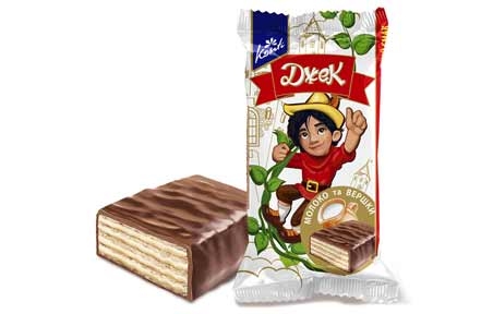 Цукерки Шоколадні історії Джек з молоком та вершками (4 кг), Конті, KONTI - це смачна цукерка, яка складається з п'яти хрустких вафельних шарів світлого кольору та з чотирьох ароматних шарів начинки. Начинка білого кольору виготовлена ​​з додаванням вершків та незбираного сухого молока.