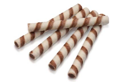 Вафельні Трубочки з Какао плюс (3,3 кг), Бісквіт-шоколад (ХБФ) - це світлі вафельні трубочки декоровані темною смужкою, з начинкою ванільного смаку з натуральних какао - продуктів.